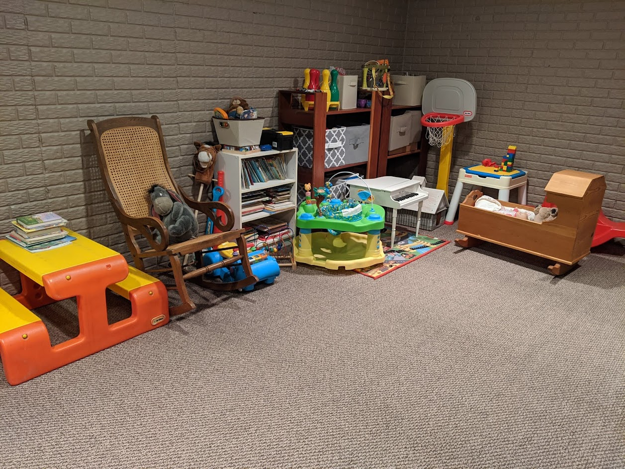 As the kiddos arrive at our door, there are hugs and kisses and smiles. There is jabbering and conversing. But, with the older ones, it isn't long till they ask if they can go "down the basement" and "play with the toys".